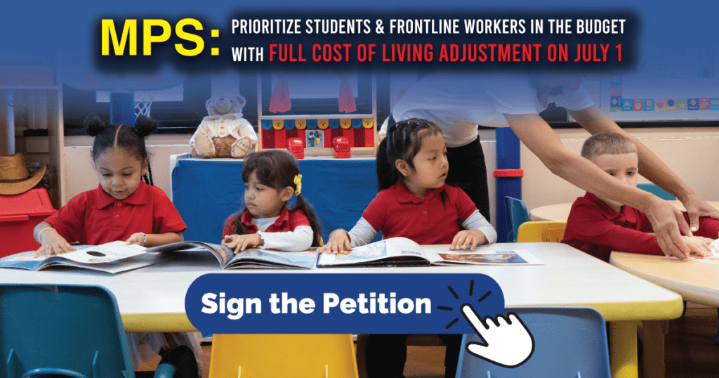 For frontline education workers, the Superintendent’s actions since she began last year demonstrate a pattern of disrespect, chaos, lies and poor planning. This was first demonstrated last spring when the superintendent forced over 100 teachers into a chaotic and insulting process to reapply and reinterview for their positions and has only continued since. Despite the Superintendent telling the Board, the public and staff that she is not going to cut classroom-facing positions, many educators received letters the week before Spring Break that revealed they would be cut completely from their schools or have their hours reduced. Art, music and physical teachers, personal finance and technology teachers, school counselors, paraprofessionals and Children’s Health Assistants are all seeing their hours reduced or cut entirely from their schools. These cuts betray not just MPS students who will be most directly impacted but all Milwaukee voters who voted yes in two recent referendums to ensure that students in classrooms would be prioritized and fully staffed. Meanwhile, the Superintendent continues to refuse to give frontline workers a full cost of living adjustment next school year despite more than 3,600 educators, parents and community members signing onto a petition calling on her to do just that. In addition, seven area community and labor organizations have written letters in favor of MPS giving a full COLA to all frontline workers, including the Amalgamated Transit Union Local 998, the Milwaukee Area Labor Council, Alderman Alex Brower, and AFSCME Local 47. The Superintendent claims she cannot afford it given MPS’s budget deficit. However this argument fails to bear weight given that she has: