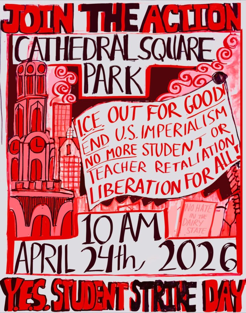 On Friday, April 24, YES students will hold a Student Day of Action at all MPS high schools with YES chapters. Students will gather and picket outside their schools with signs made at the Art Build, including signs with the Budget Fight messaging. They will be picked up by buses at 10am and taken to Cathedral Square where they will be joined by students from neighboring districts for a 4-block radius march around Cathedral Square.