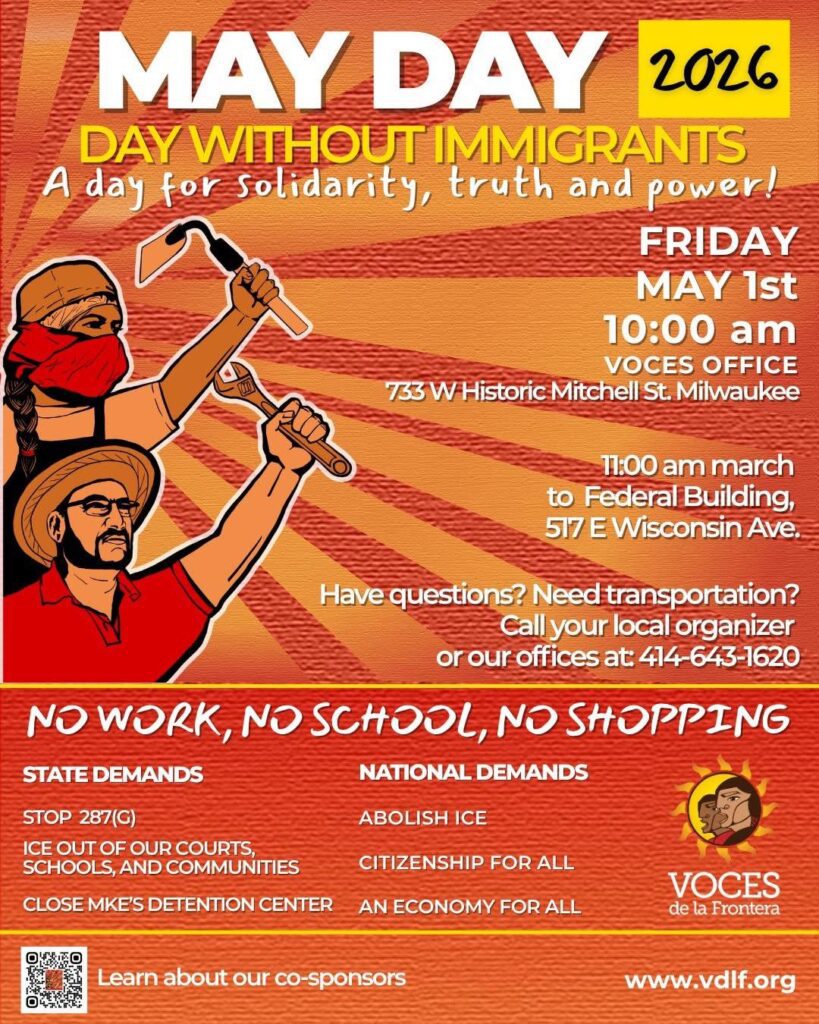 MTEA members will join Voces and other community advocates in front of the Voces office, 737 W. Mitchell St., no later than 10am for a rally. At 11am, the march will begin at the Voces office and head to the Federal building in downtown Milwaukee, 517 E. Wisconsin Ave. There will be a rally and speaking program at the Federal building.